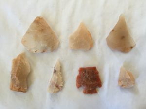 The silence was deafening, since I owned the Overlook for 30 minutes before other cars pulled in. Reluctantly I said goodbye to this special location of joy and peace. On the drive back I stopped to walk up to a couple of caves in a sandstone bluff. But no petroglyphs! I was disappointed until I looked closer at the trail, and discovered several flinty “scrapers” which the Anasazi people used to scrape clean the hides of animals they had speared. And speaking of spears, I found two flint arrowheads which were carved by a flint-knapper maybe 700 years ago, although the tip of one was missing. Over the years I have uncovered lots of pottery shards of this vintage, but never an arrowhead.
