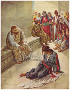 First, a woman caught in adultery was thrown at Jesus’ feet. The leading religious authorities, armed with stones, said the Jewish law required her to be stoned to death. Jesus said okay, if one of you has never sinned let him throw the first stone…..but no-one stepped forward. Jesus told the woman she was free to go, but urged her not to make the same mistake again. The authorities were experts in the law, but they had no grasp of grace.