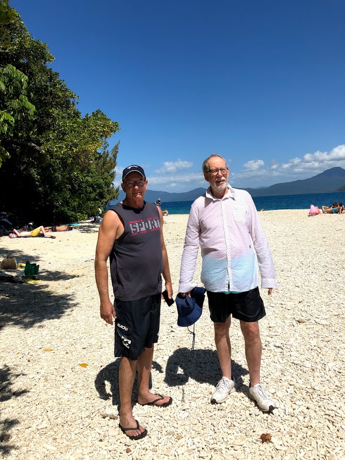 WE ALSO VISITED AN ISLAND IN THE GREAT BARRIER REEF – FITZROY ISLAND. After a 30-minute ferry ride from Cairns, the tour guides recommended a short hike to Nudey beach. We had not intended to skinny-dip, but you never know…